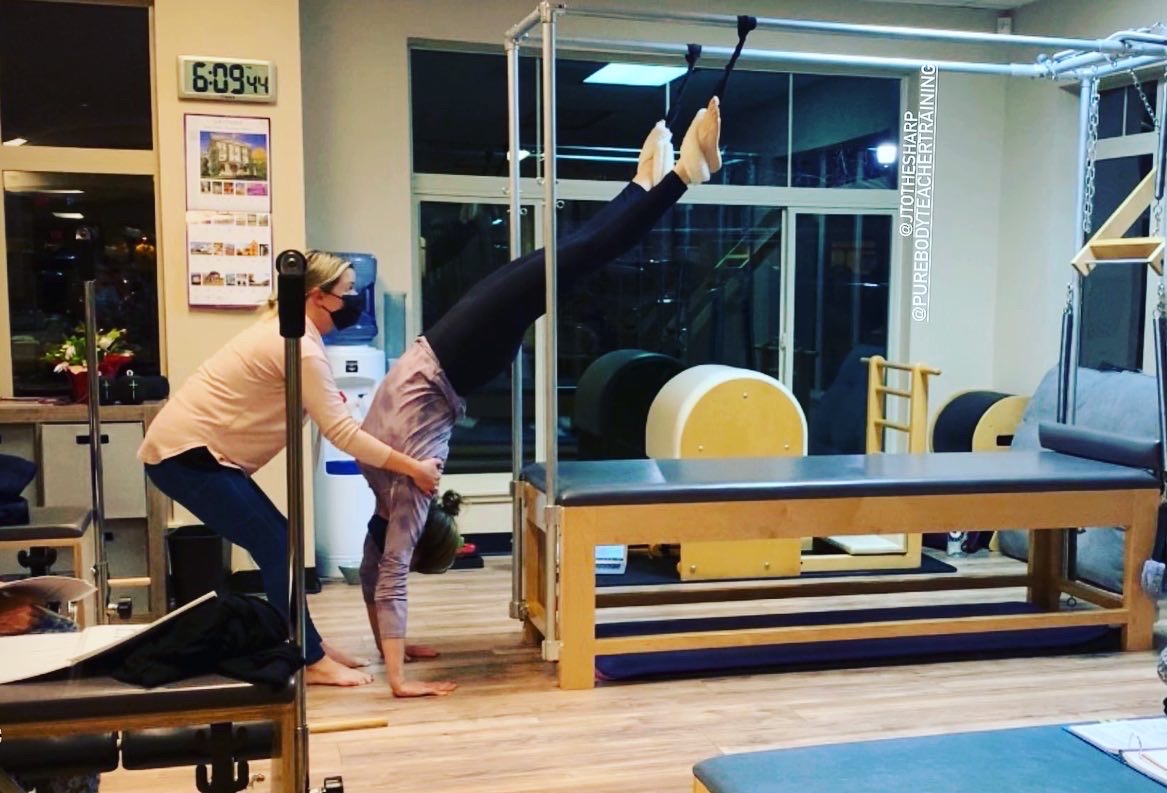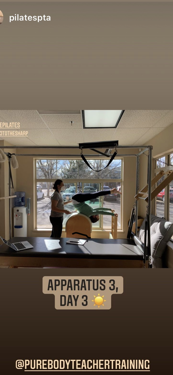 When my local teacher, Whitney Shea, mentioned she was leading a teacher training in Boulder, Colorado, I signed up immediately. Not only for my own practice but for the possibility to help others feel good in their bodies. Part of the program is learning over 500+ exercises on the mat, reformer, Cadillac, chair, spine corrector, and ladder barrel, and then we have to practice and teach it.